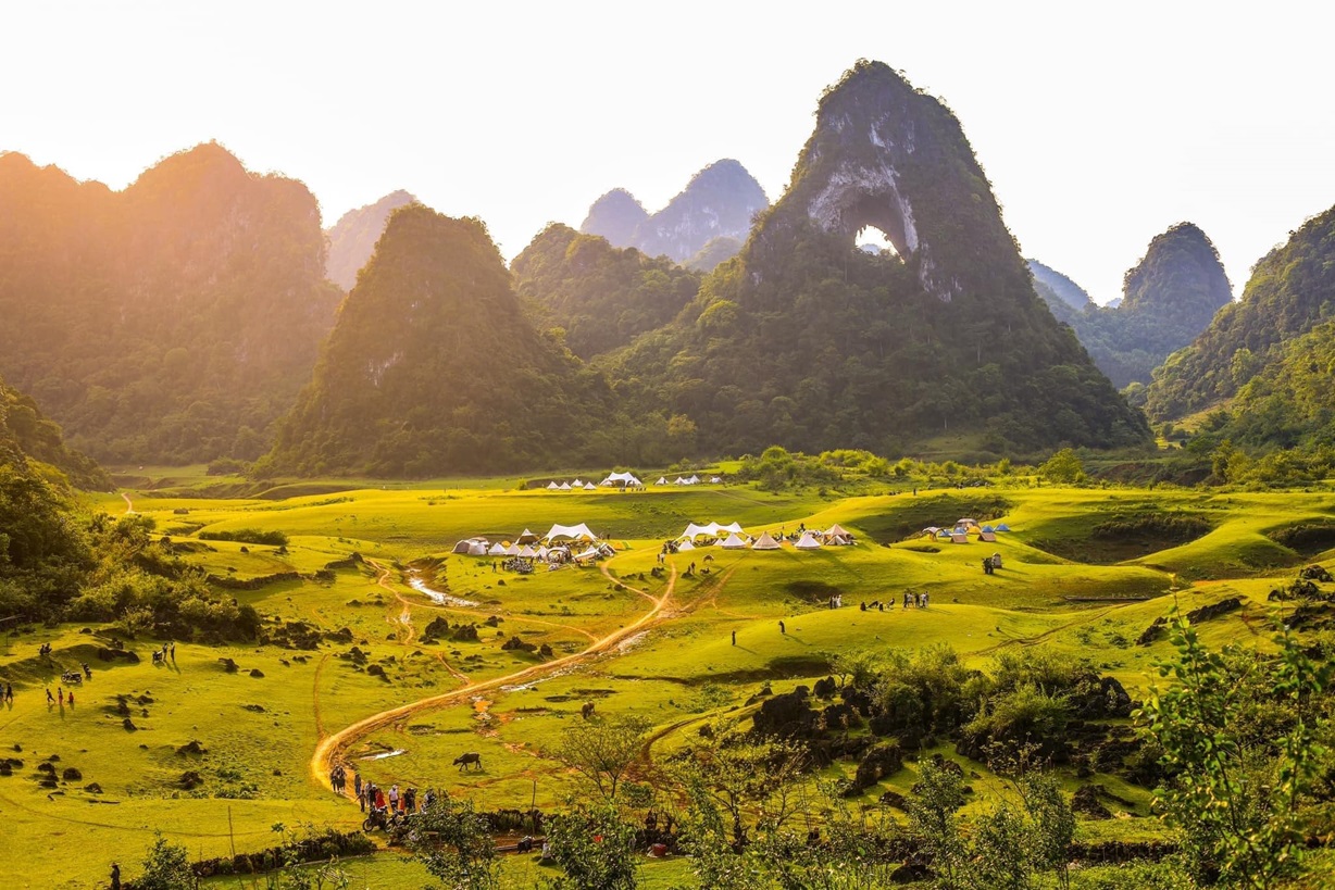 08:00 Our guide and driver will pick up at your hotel to visit Ban Gioc Pagoda. From here, you can take a magnificent view above of Ban Gioc Waterfall. After that, we go to Angel Eye Mountain which has a through hole (Thung Mountain, which is located in Quang Uyen District).